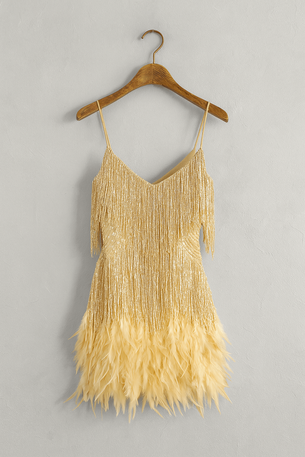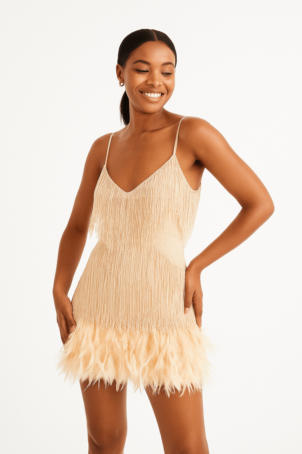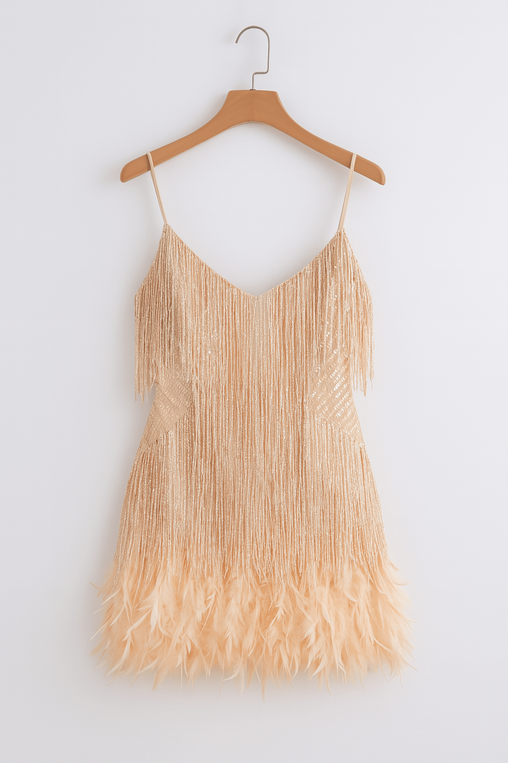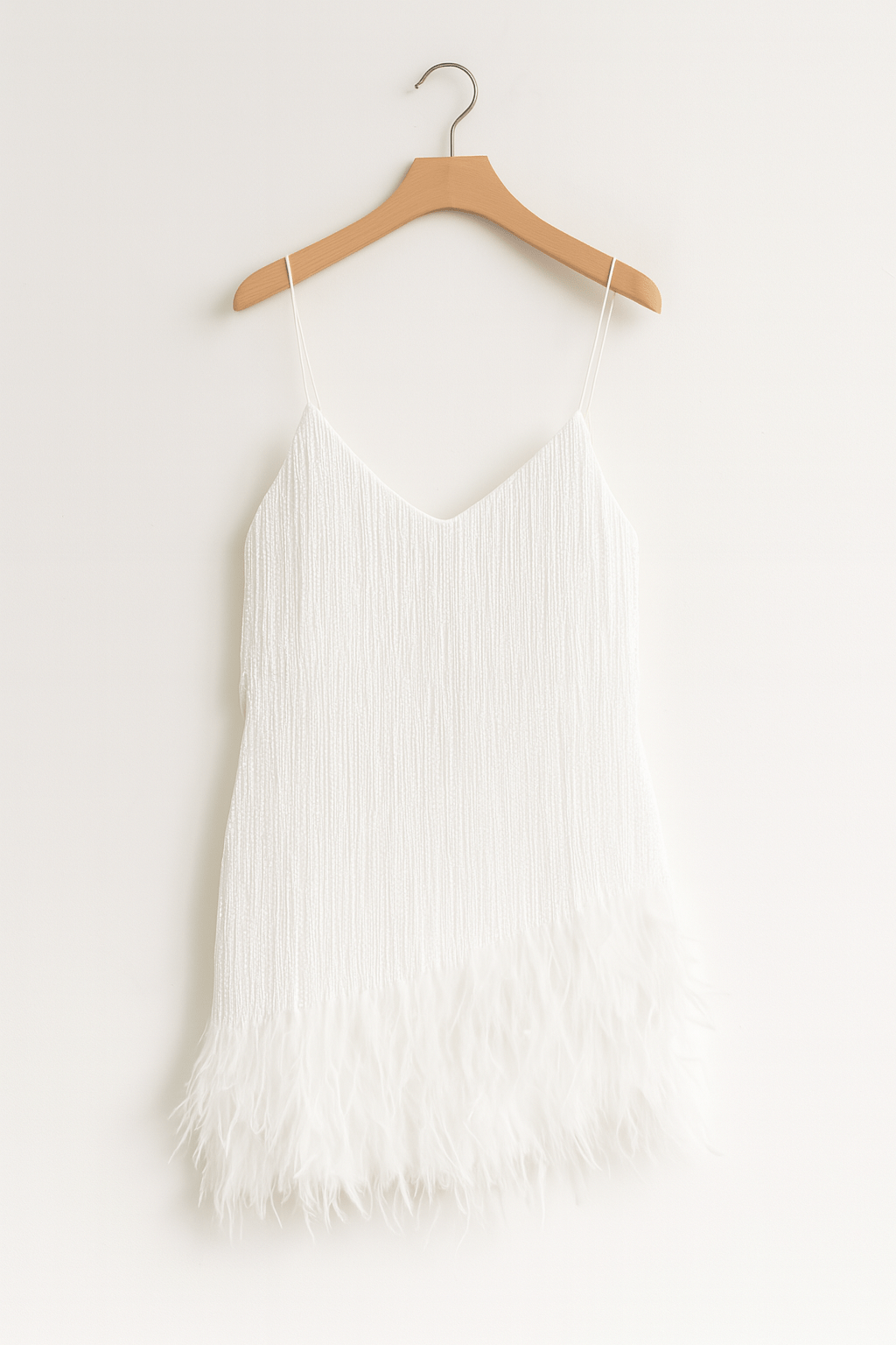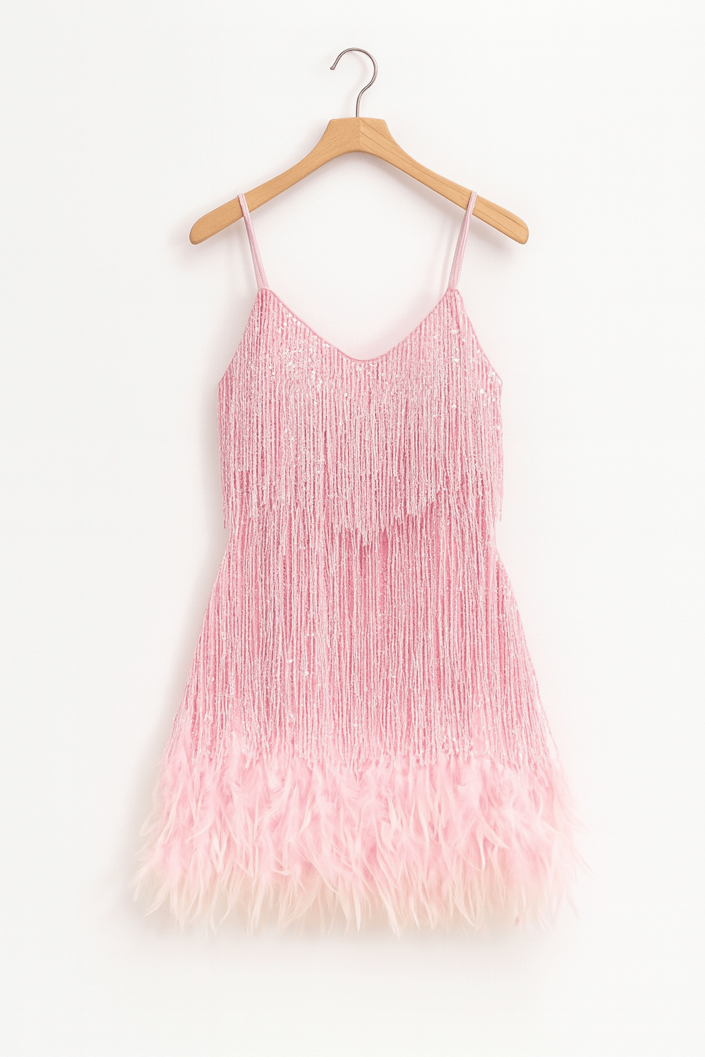 The delicate straps, playful fringe finish, and elegant feather trim give you a lightness that lights up any room—perfect for parties, events, or a special dinner.